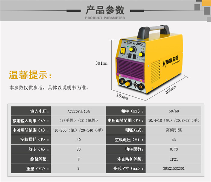 銳龍WS-200P逆變直流小型不銹鋼焊機(jī)脈沖氬弧焊兩用電焊機(jī) 官方標(biāo)配