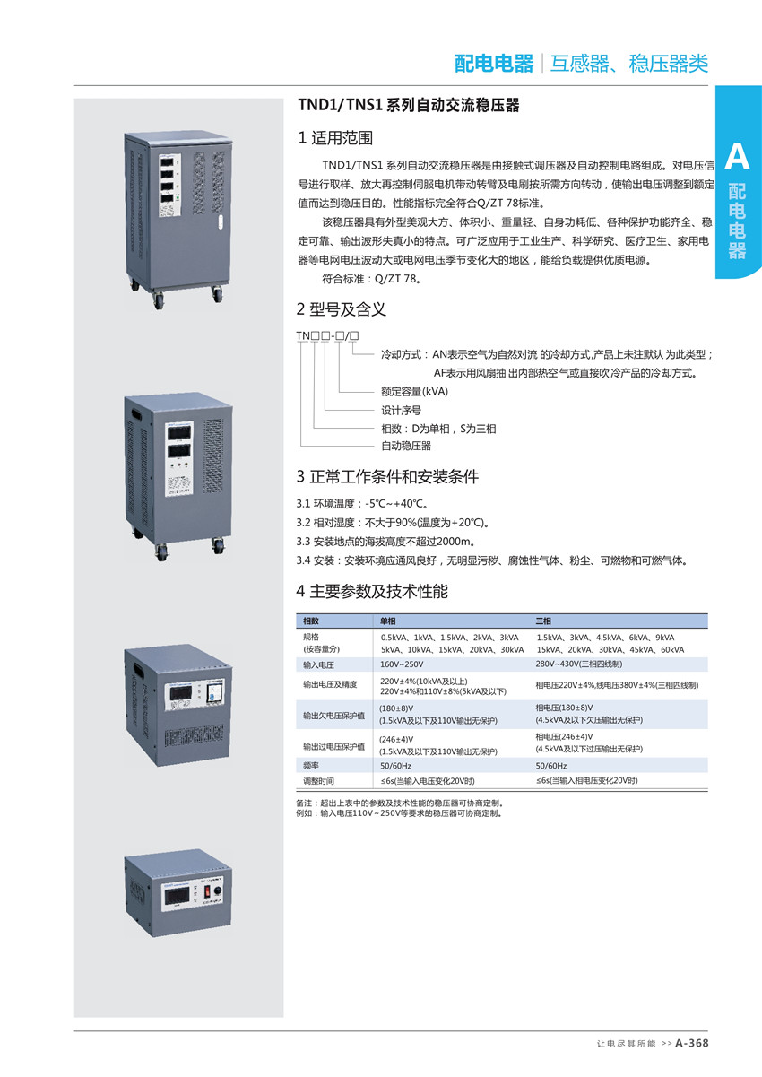 TND1/TNS1 系列自動(dòng)交流穩(wěn)壓器