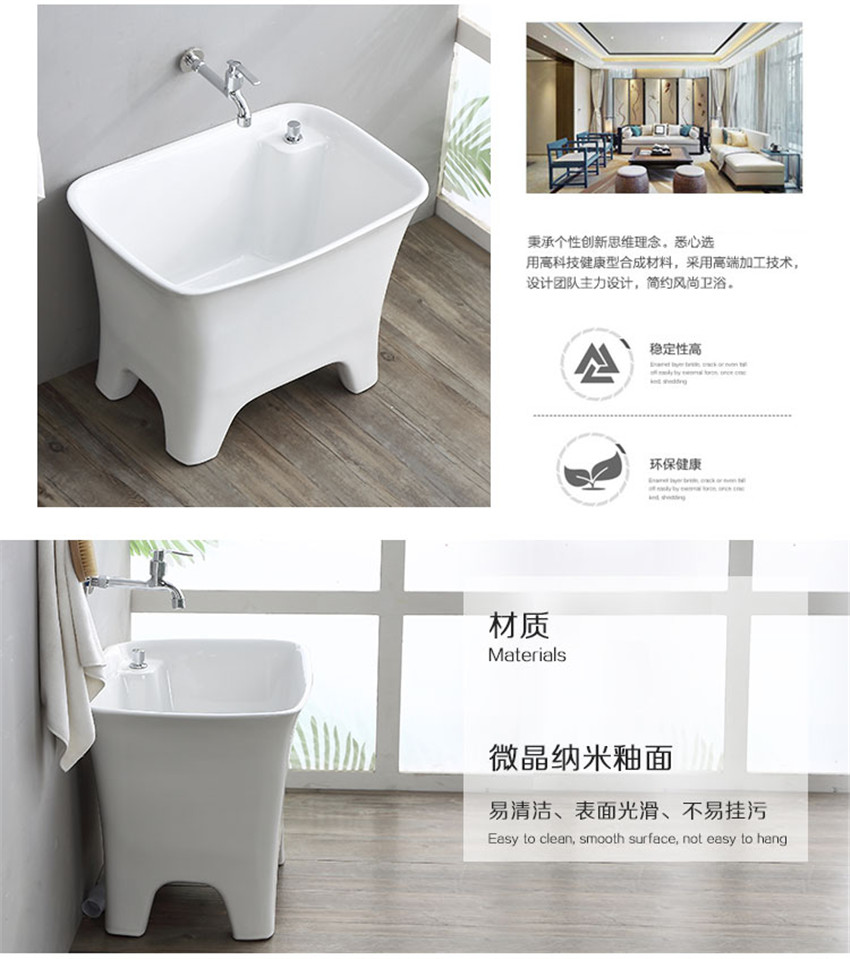 陽臺大號方形拖布池 帶腳拖把盆衛(wèi)生間地拖水池家用洗墩布池 拖布池