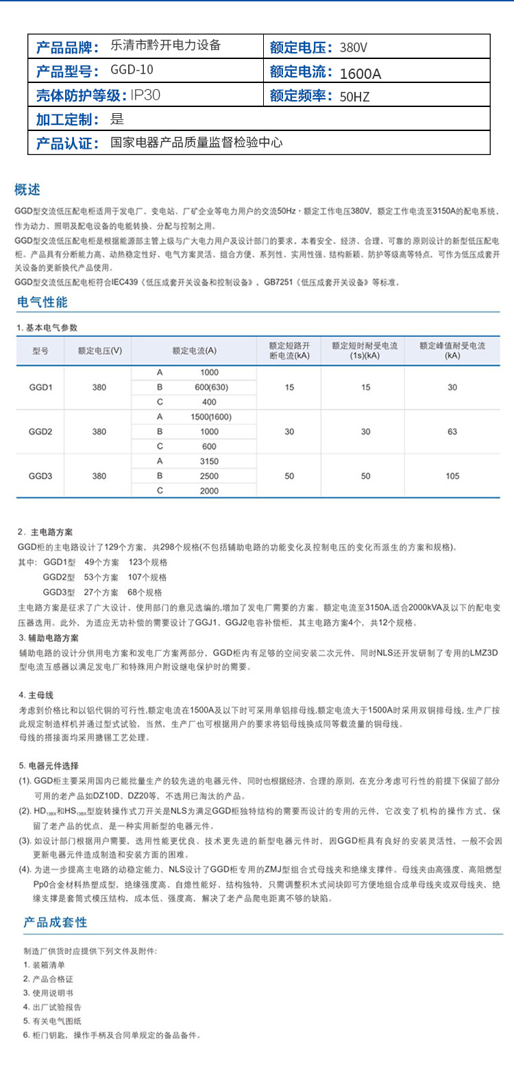 GGD系列交流低壓配電柜