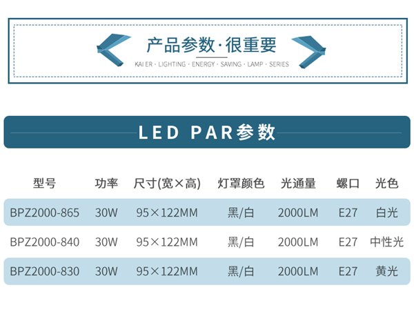 開(kāi)爾照明LED軌道燈PAR射燈