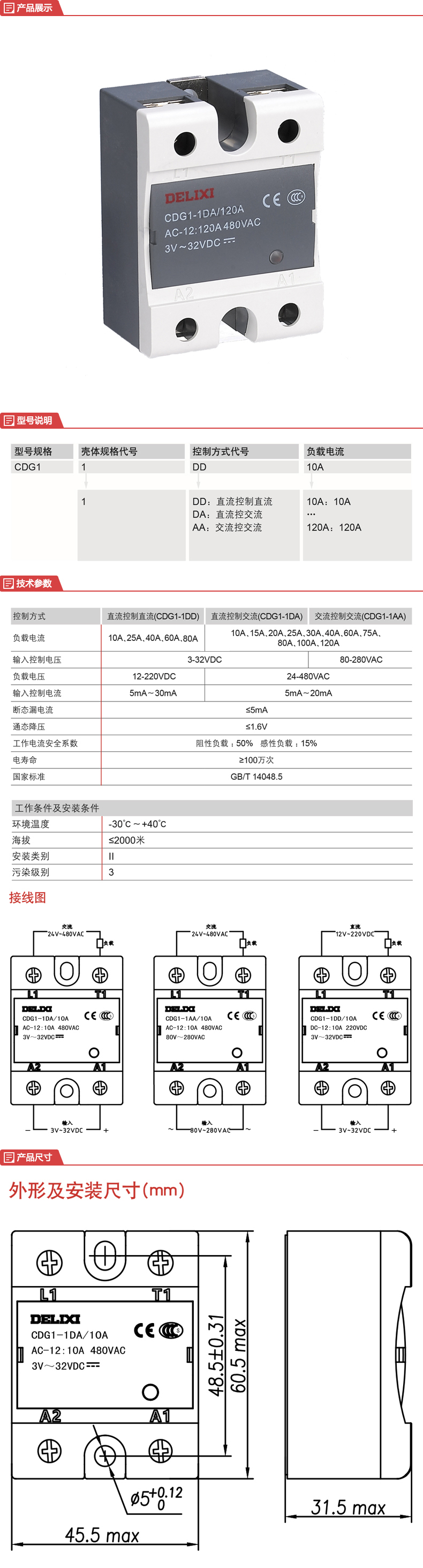 單相固態(tài)繼電器:CDG1-1DD 25A