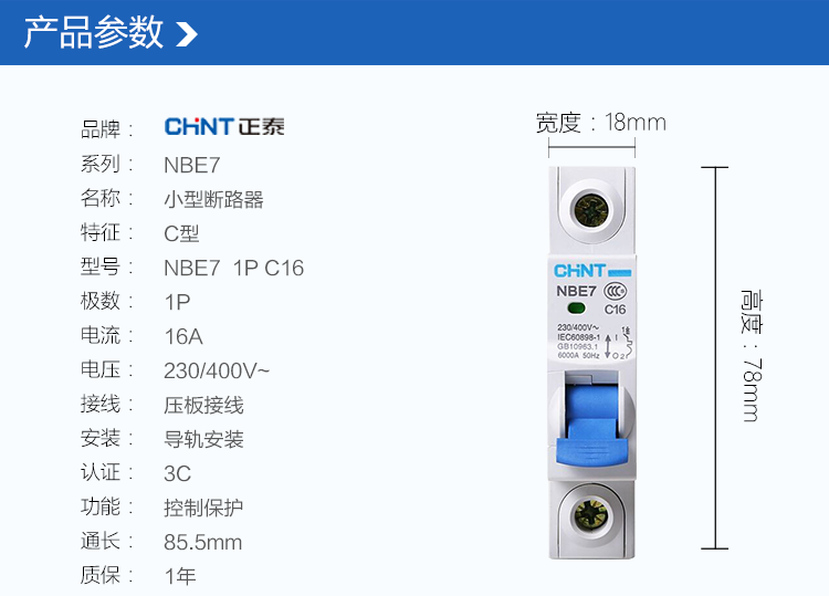 正泰(CHNT) 斷路器 空氣開關(guān) 家用空開 單極 1P 16A C型 NBE7