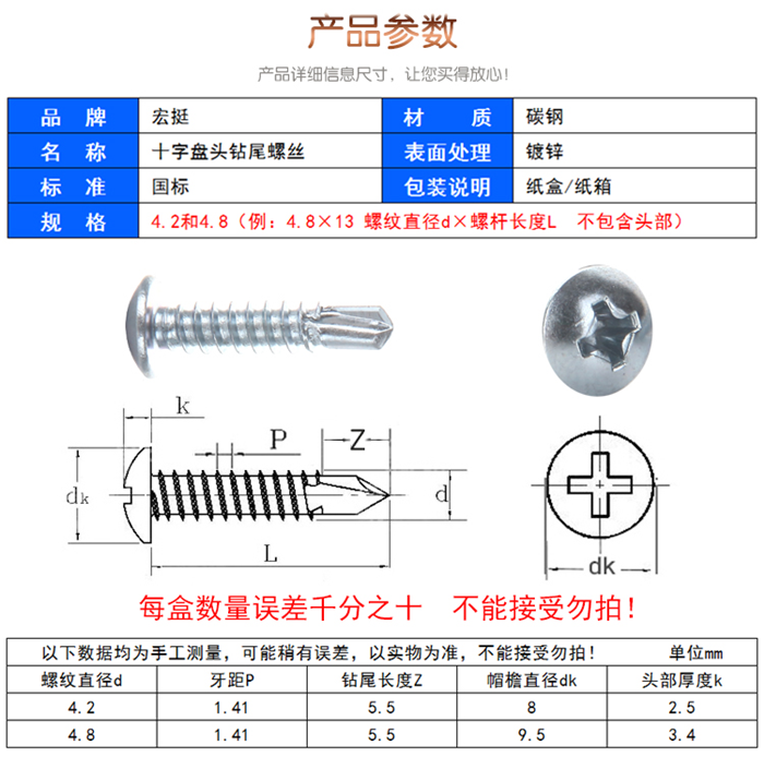 定制宏挺十字盤頭鉆尾螺絲
