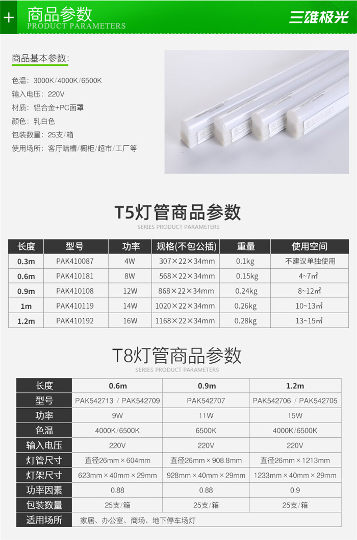 三雄極光t8/t5光管
